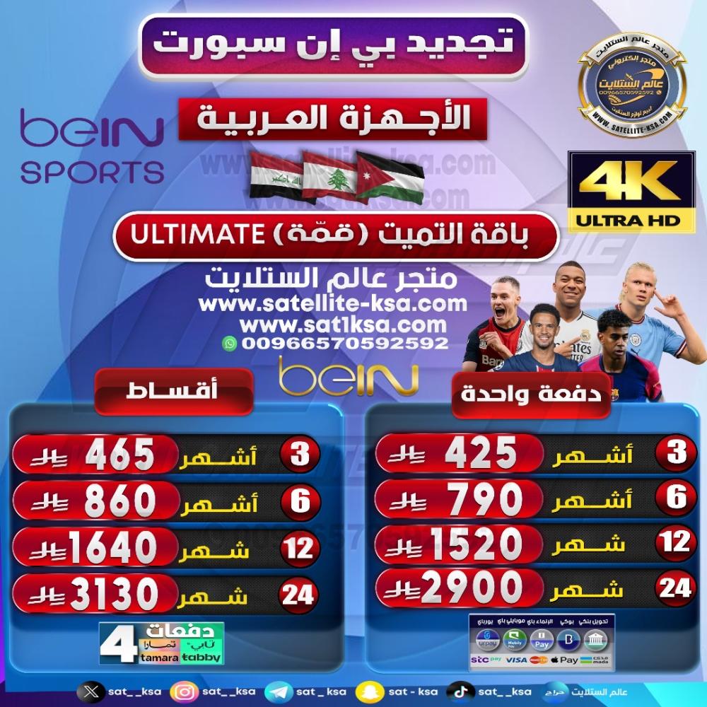 تجديد بي ان سبورت باقة قمة (التميت) الاجهزة العربية فقط