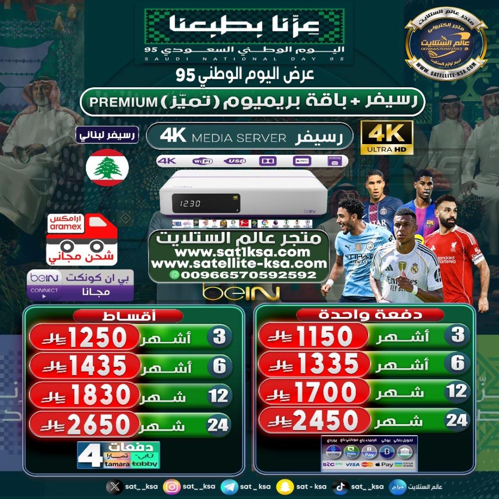 رسيفر بي ان سبورت 4k لبناني + باقة بريميوم (تميز)